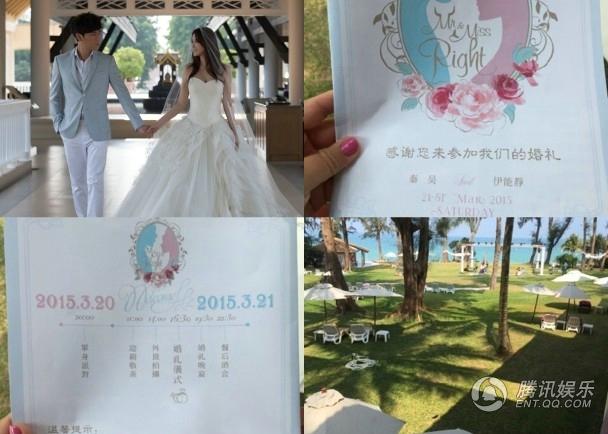 据香港媒体报道,台湾美魔女46岁伊能静21日在泰国普吉岛同小10岁的内地演员秦昊结婚,举行婚礼的现场照曝光,地点位于海边附近,配合周围树木同草地的环境,极具阳光气息,婚礼在乐古浪度假区举行,据请柬上显示,二人21日上午11点迎亲敬茶,下午两点外景拍摄,4点半举行婚礼仪式,夜晚7点半举行婚宴,10点半就有餐后酒会。