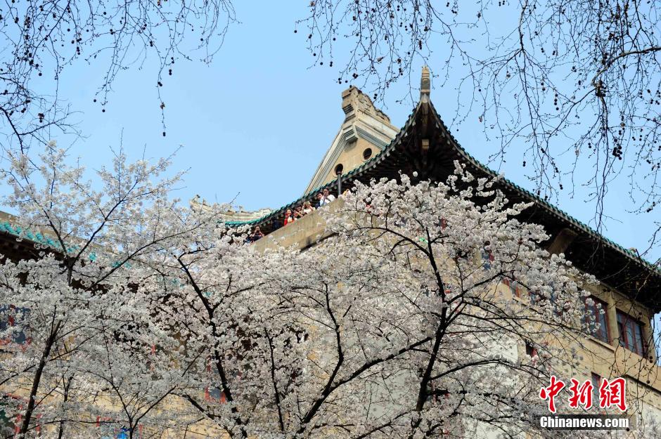 3月21日,武大樱花盛开游客如织。当日,武大樱花盛开的首个双休日。长约200米的樱花大道上1000多株樱花竞相绽放,吸引着数万游客,使宁静的校园变成了热闹的公园。中新社发 张畅 摄