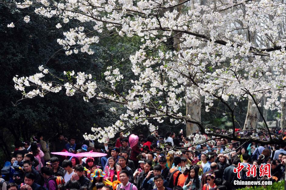 3月21日,武大樱花盛开游客如织。当日,武大樱花盛开的首个双休日。长约200米的樱花大道上1000多株樱花竞相绽放,吸引着数万游客,使宁静的校园变成了热闹的公园。中新社发 张畅 摄