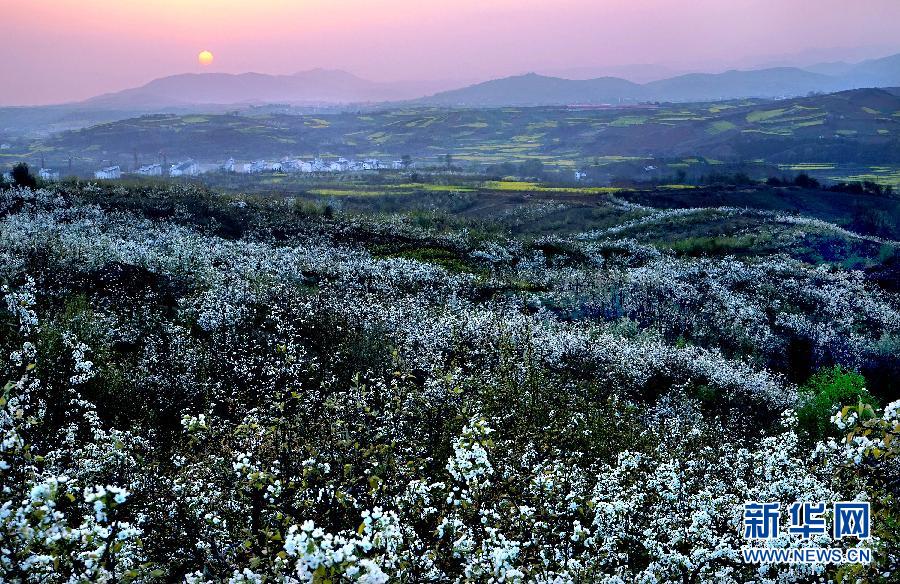 这是3月21日拍摄的汉中市洋县万亩梨园风光。近日,地处秦岭南麓的陕西汉中市洋县的万亩梨花盛开,吸引不少游人前来观赏拍照。当地政府大力发展生态旅游观光业,着力打造融自然生态、人文景观、农业观光为一体的综合性开放式生态园林景观名片。新华社记者陶明摄