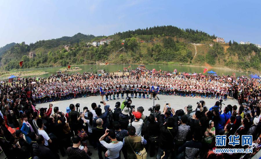 3月21日,在广西三江侗族自治县梅林乡梅林村,侗族群众在唱侗族大歌。当日是农历二十四节气中的“春分”,广西柳州市三江侗族自治县梅林乡举行“二月二”侗族大歌节,当地侗族、苗族、壮族群众欢聚一堂,放声高歌。新华社发(谭凯兴 摄)