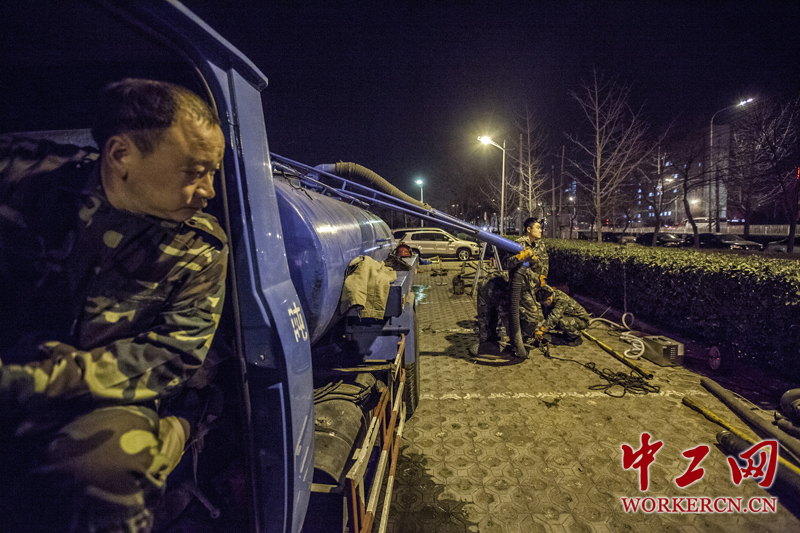 午夜零点,张喜忠带着他的兄弟们来到了北京田村街道某小区的化粪池,由于白天居民用水量大不利于作业,所以他们只能凌晨进行清理化粪池的工作。这个约有35立方米的化粪池已经被污物填满,在掀开井盖的瞬间,一股刺鼻的气味几乎让人窒息,老张说这个化粪池他们已经用排污车抽了两个晚上,顺利的话当晚就可以完工。 中工网记者 韩靖摄