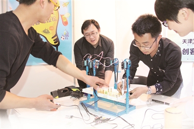 天津北方网讯:创客是当下热词,尽管名字“火”了,但对多数人来说,对创客仍然有点陌生。3月28日,由天津创客空间举办的首场创客马拉松比赛让大众零距离了解了何为“创客”。通过这种开放式的比赛,不仅让参赛的年轻创客们有了施展自己才华的舞台,更让他们有机会最终参加全国性的比赛,鼓励他们的创新热情。同时,这场充满创意元素、形式新颖的比赛还吸引了众多大学生、创业者和市民现场观摩,万众创新的热情被进一步激发。