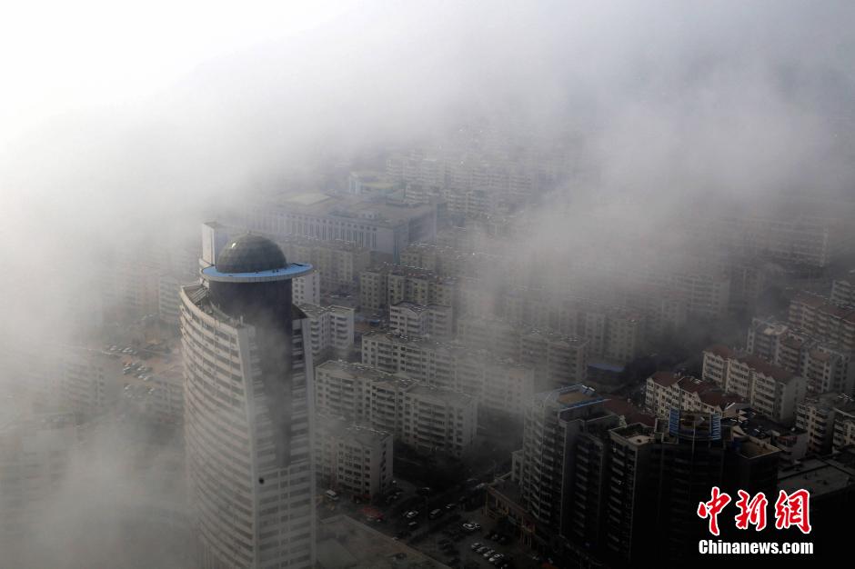 3月29日,山东青岛出现海雾,整个城市笼罩在雾海之中,若隐若现,美若仙境。据了解,由于青岛临近黄海,受暖湿气流的影响比较频繁。每年的4到6月份是青岛的海雾季,常常会出现平流雾景观。中新社发 俞方平 摄
