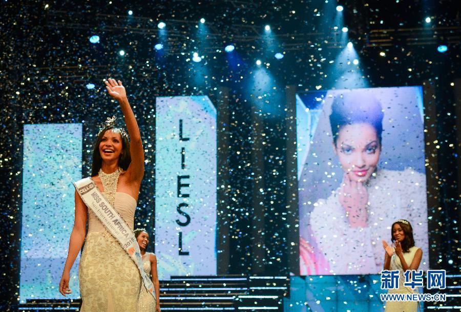 3月29日,在南非太阳城,2015年南非小姐冠军劳里在总决赛上向观众挥手致意。新华社记者翟健岚摄 图片来源:新华网