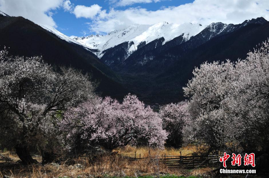 3月30日,西藏林芝第十三届桃花文化旅游节在嘎拉村开幕,吸引国内外游客前来观赏。林芝素有“西藏江南”、“东方瑞士”之称,近年来因其春天里开满山头的桃花,以及纯朴民风,被海内外观光客知晓,又被赋予雪域“桃花源”的美誉。由于海拔高,林芝的桃花直到3月末、4月初才盛,而每年这个时候,当地都会在有“桃花村”之称的林芝县嘎拉村举办桃花节。嘎拉村距林芝县城仅十多公里,四面雪山环抱,村外是川流不息的尼洋河,如绯云般的桃花遍布山村四周。唐朝杨 摄
