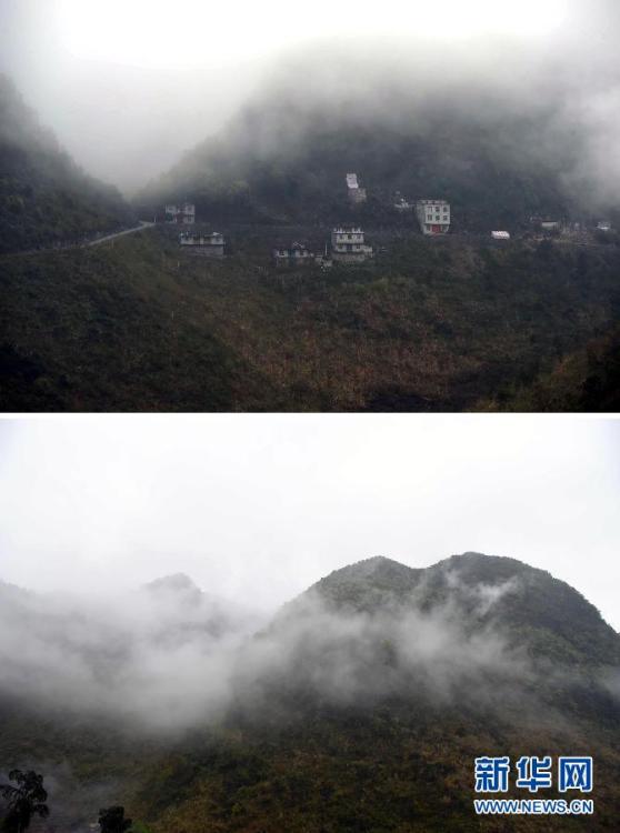 上图:3月9日在大化瑶族自治县板升乡八好村拍摄的外迁村民在路边新建的楼房;下图:3月9日拍摄的这些外迁村民原来所居住的八好村弄平屯(拼版照片)。 新华社记者 黄孝邦 摄 图片来源:新华网