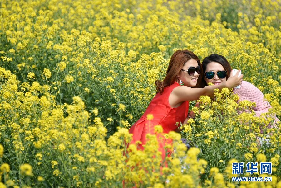 3月30日,众多游客在双泉镇观赏油菜花。近日,山东济南双泉镇万亩油菜花进入盛花季,吸引了众多市民和游客前来参观踏青。济南双泉镇地处泰山北麓,自2012年起该镇因地制宜,利用丘陵地块发展油菜花种植,旅游业让当地农民人均年增收近千元。新华社记者朱峥摄
