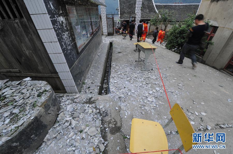 这是剑河县南加镇新柳村震后散落在街头的瓦砾(3月30日摄)。 3月30日,贵州省黔东南苗族侗族自治州剑河县发生5.5级地震。初步统计,地震已造成剑河县2200余户1.3万人受灾。这场地震是新中国成立60多年来贵州发生的最大震级地震。新华社记者欧东衢摄