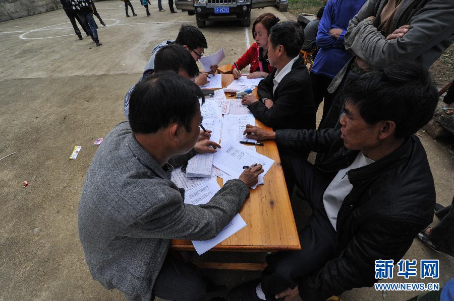 3月30日,工作人员在剑河县南加镇新柳村统计受灾情况。当日,贵州省黔东南苗族侗族自治州剑河县发生5.5级地震。初步统计,地震已造成剑河县2200余户1.3万人受灾。这场地震是新中国成立60多年来贵州发生的最大震级地震。新华社记者欧东衢摄