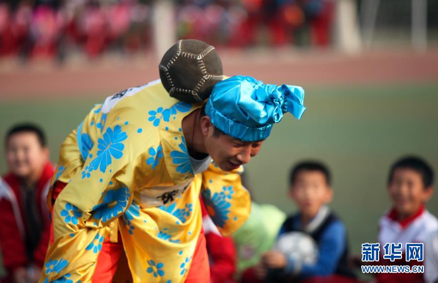 “蹴”是用脚踢,“鞠”是皮质的球,“蹴鞠”就是用脚踢球之意。相传古时清明节要寒食禁火,为防止寒食冷餐伤身,蹴鞠成为清明节的重要民俗活动之一。2004年,临淄被确认为世界足球起源地,蹴鞠被确认为足球的最早起源。随着“足球进校园”活动的开展,山东省淄博市临淄区将足球列入中小学生的必修课,蹴鞠文化也随之风靡校园,受到越来越多人的喜欢。新华社发(崔立来 摄)