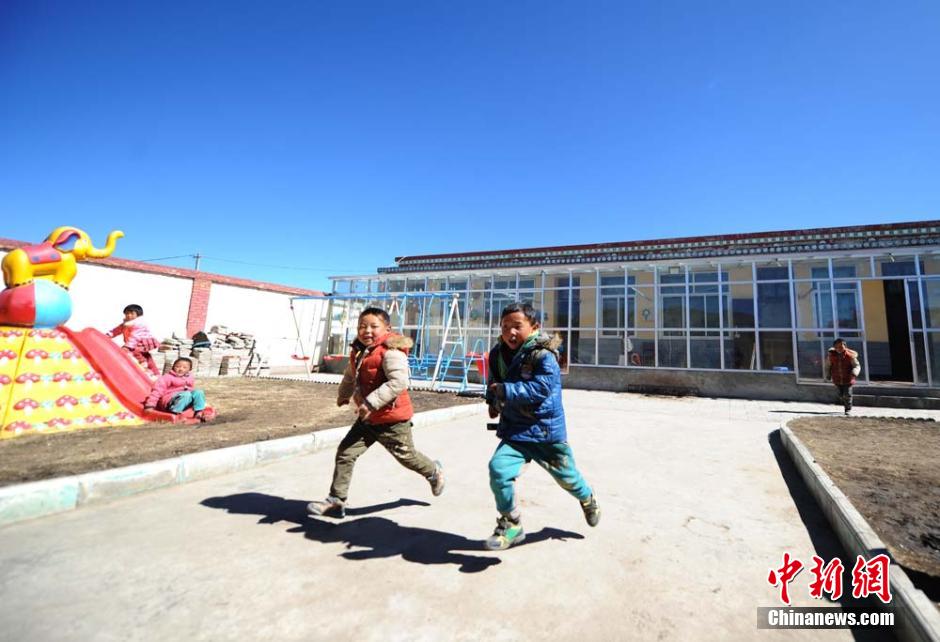座落在在甘肃藏区甘南夏河阿木去乎镇牧民区的“不收学费”村级幼儿园,是在小学闲置校舍的基础上改建而成的,孩子们在这里快乐的接受着启蒙教育。杨艳敏 摄