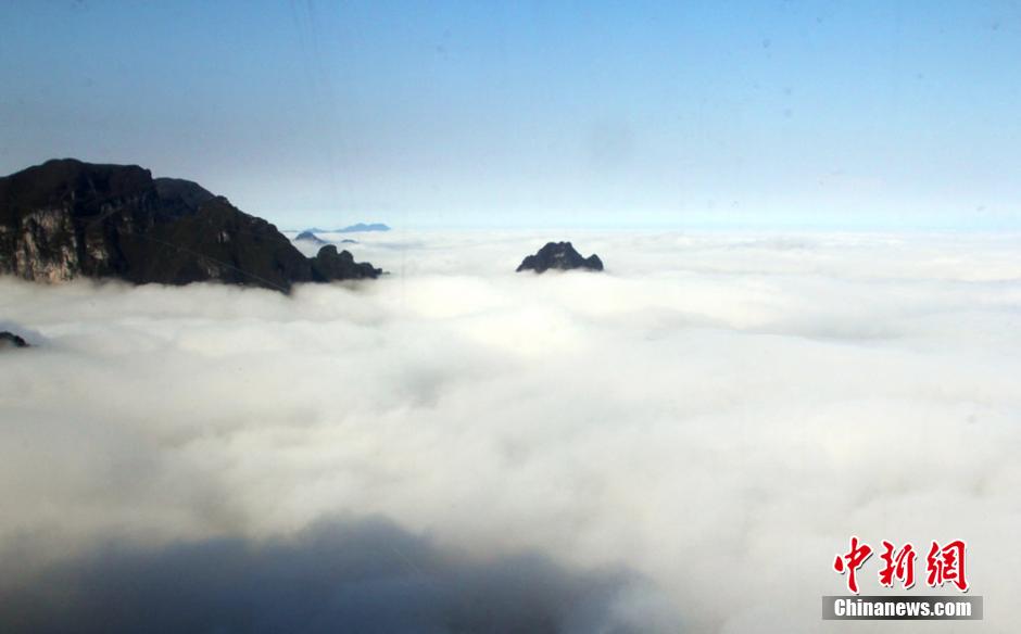 数千游客玻璃栈道上争睹天门山云海奇观