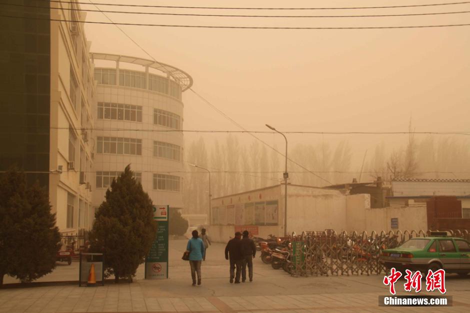甘肃敦煌遭遇强沙尘暴天气 黄沙遮天蔽日