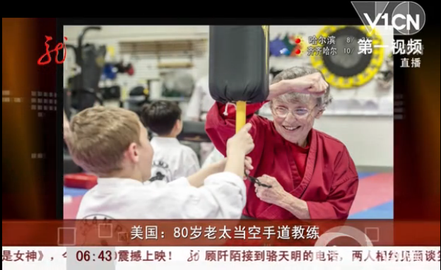 在美国堪萨斯州那雷萨,空手道学校的老板Helen Dugan在教7岁的Brayden Bond防守动作(3月9日摄)。80岁的老奶奶Helen Dugan是空手道黑段三级,她现在有时会向学员教授空手道课程。