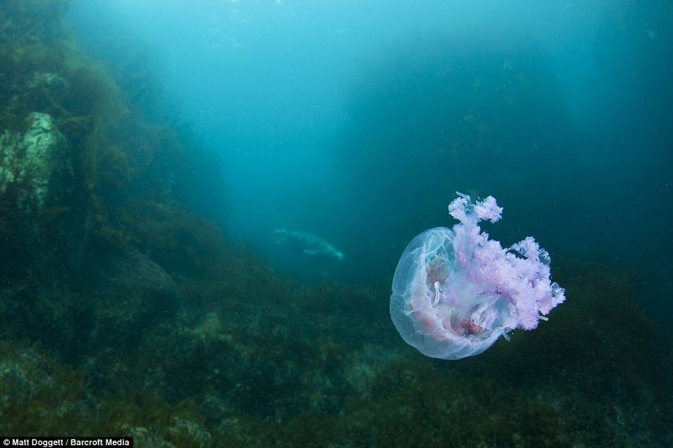 潜水员潜水时,拍摄到了隐藏在这片海域海底罕见的紫色水母。(网站截图)