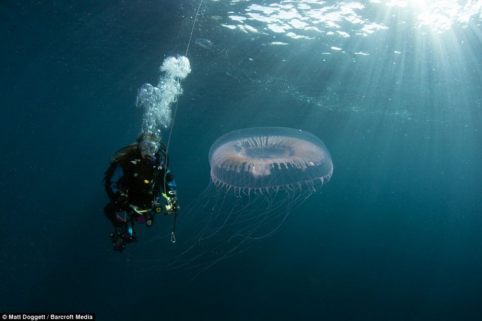 潜水员潜水时,拍摄到了隐藏在这片海域海底罕见的狮鬃水母。(网站截图)