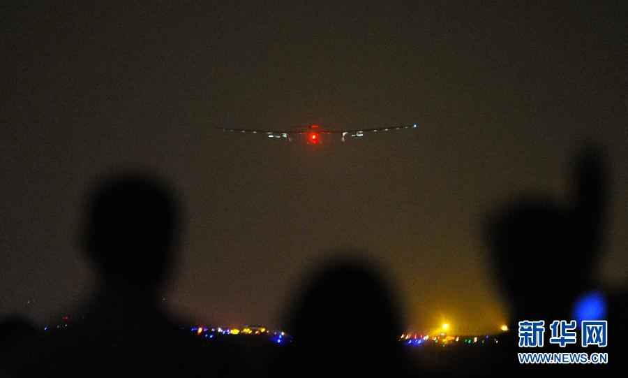 3月31日凌晨,在重庆江北国际机场外的一个观看点,重庆的市民群众在观看世界最大太阳能飞机“阳光动力”2号降落过程。
