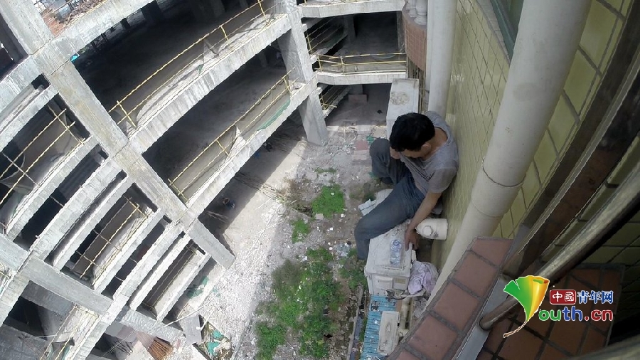2015年03月30日,广东深圳,一男子盗窃被发现后爬上一宾馆外墙与救援人员对持,在墙上僵持时间超过40小时。