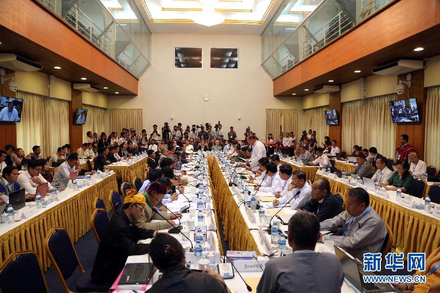这是3月30日在缅甸仰光拍摄的缅甸第七轮全国停火谈判会议现场。