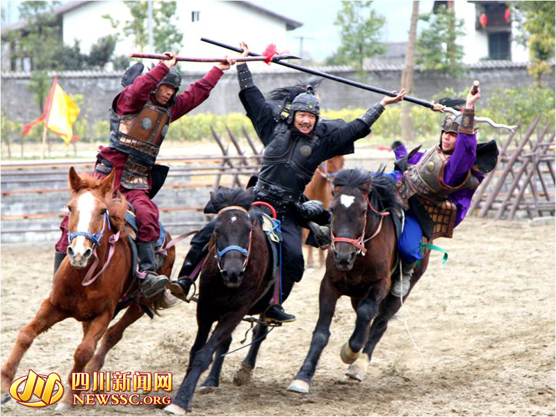 中国网3月21日讯 “看金戈铁马,忆三国英雄。”3月20日下午,“秀美四川·蜀道花香”全国网络媒体采风团在昭化古城,观看了四川唯一大型古装实景马战表演——《张飞战马超》。精彩激烈的视觉盛宴,让采风团成员喝彩声此起彼伏、掌声不断。“看完马战表演,让我的这次的网络行更添色彩,真的是不虚此行。”华龙网编辑王艺诺说。