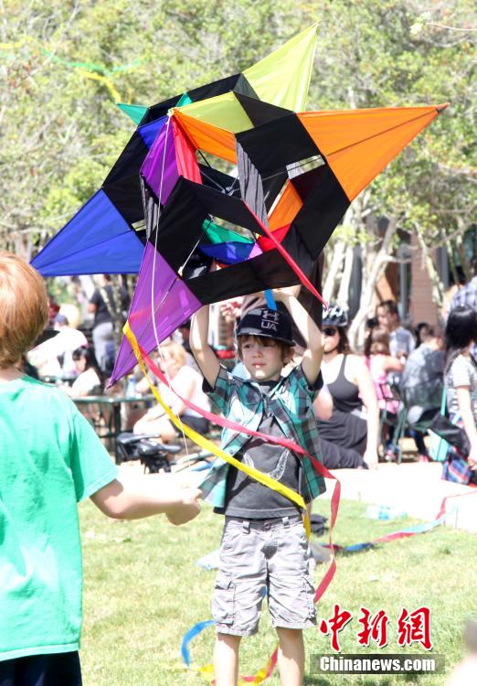 当地时间3月29日,美国第四大城市休斯敦在市中心的赫曼公园举办风筝节迎接春天的到来。中新社发 王欢 摄