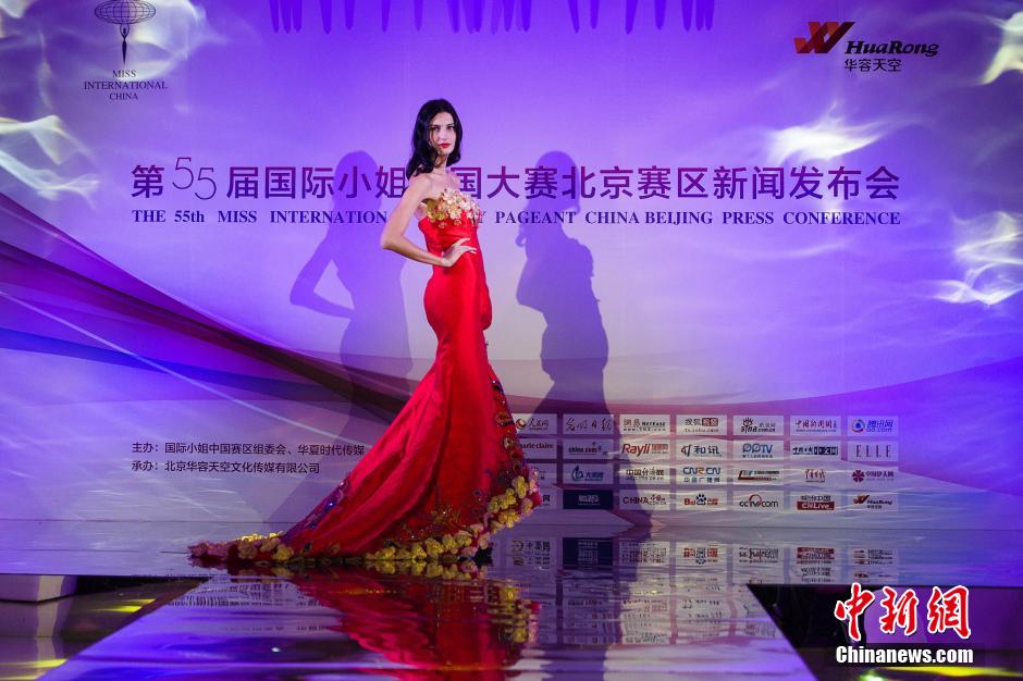 3月30日下午,第55届国际小姐中国大赛北京赛区启动仪式新闻发布会在北京举行。据悉,第55届国际小姐北京赛区将于4月份开始启动,本次赛事结合城市文化、城市旅游、公益慈善、环保宣传落地活动等,通过电视媒体、网络媒体、平面媒体、广播媒体等资源整合,集合多方力量,将美丽事业推至一个国际化高度。图为启动仪式现场各国佳丽T台走秀。中新网记者 金硕 摄