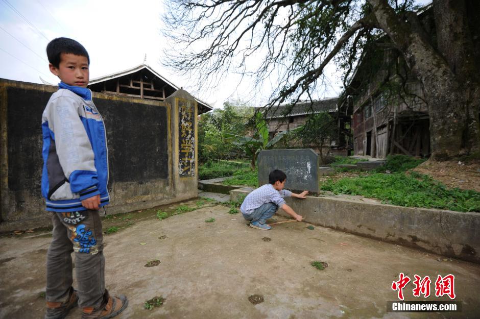 图为在柳基村村口广场玩耍的小孩。 中新社发 李克 摄