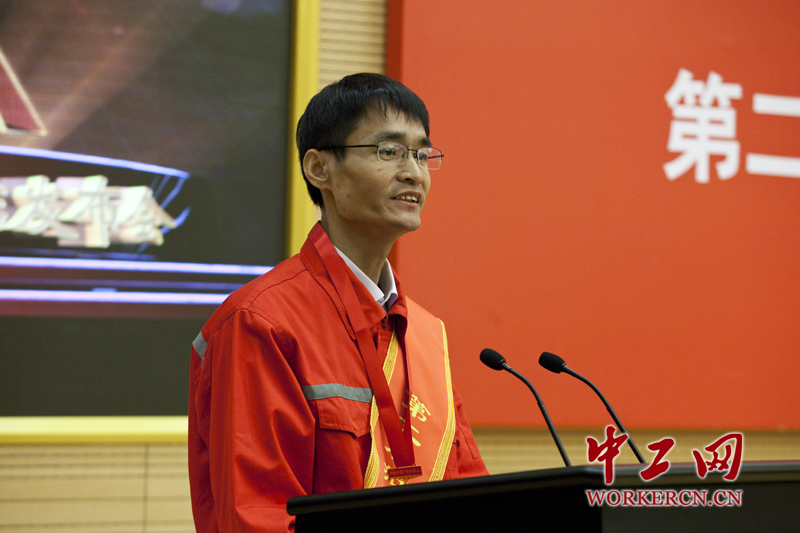 本届年度人物吴吉林代表石油石化行业广大职工宣读倡议书。 中工网记者 李雪峰 摄