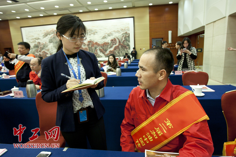 中国石油新疆油田重油开发公司采油班班长肉孜麦麦提·巴克在发布会现场接受记者采访。 中工网记者 李雪峰 摄