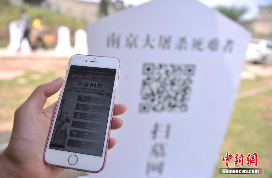 3月31日,重庆洋人街工作人员在景区内摆放了“南京大屠杀死难者”、“重庆大轰炸惨案”等二维码模拟墓碑吸引游客扫墓,为遇难同胞们进行祭扫缅怀。景区负责人称,清明节即将到来,希望能为游客提供一个文明祭扫平台,通过扫一扫二维码简单的方式为遇难同胞们献花、点蜡烛、撞钟、上香、祭酒,也可了解到更多的历史故事。陈超 摄