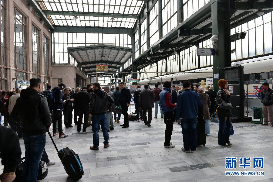 3月31日,在土耳其安卡拉到伊斯坦布尔的高铁车站,电力突然中断导致高铁停运,旅客滞留在站台上。