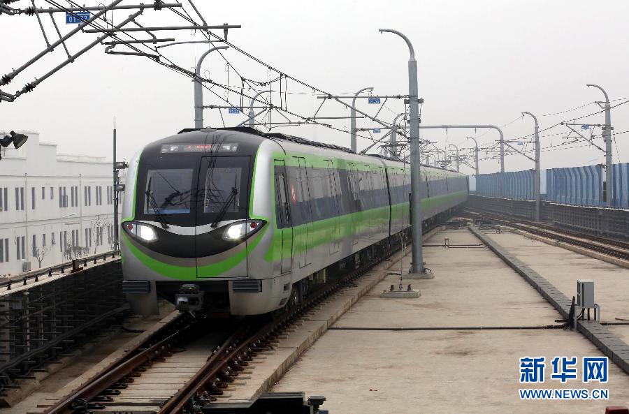 4月1日,南京地铁三号线列车驶入林场高架站。当日,全长44.87公里的南京地铁三号线开通试运营,南京地铁轨道线网由此达到225公里,运营里程位居全国第四。南京地铁三号线于2011年3月1日开工建设,线路起自京沪普铁林场站附近,终点位于江宁区秣周东路站,全线共设车站29座,其中地下站28座,高架站1座。新华社发(颜闽航 摄)