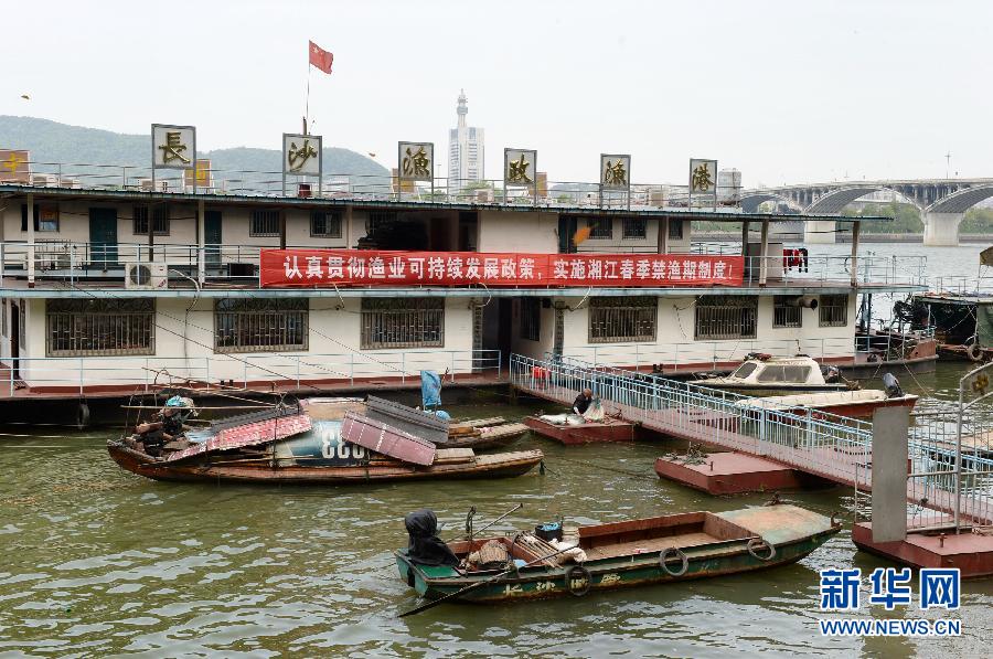 长沙渔政渔港码头停靠的渔船(4月1日摄)。4月1日,为保护湘江渔业生态环境和渔业资源,湖南启动湘江干流春季禁渔。据介绍,湘江干流4月1日12时至6月30日12时实行春季禁渔,禁止所有捕捞行为。目前,当地渔政人员正加强值班守护,在湘江进行巡逻巡查。新华社记者 龙弘涛 摄
