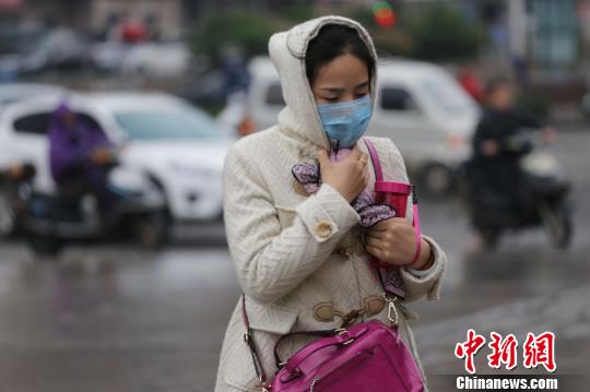 4月1日,河南郑州,行人迎着大风冒雨在街头骑行。 杨正华 摄