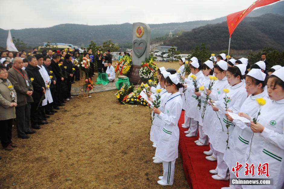 4月1日,山西太原天龙山,社会各界民众缅怀纪念遗体捐献者。当日是太原市遗体捐献纪念日,活动主题为“生命在奉献中延续”。官方通过组织纪念活动,向已实现捐献的志愿者们寄托哀思,弘扬科学奉献精神,倡导博爱文明新风,促进殡葬习俗转变。 韦亮 摄
