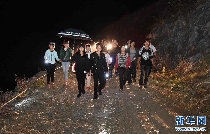 2月28日凌晨5时,凌晨5时许,年轻人蒙桂德(前右)迎接未婚妻。