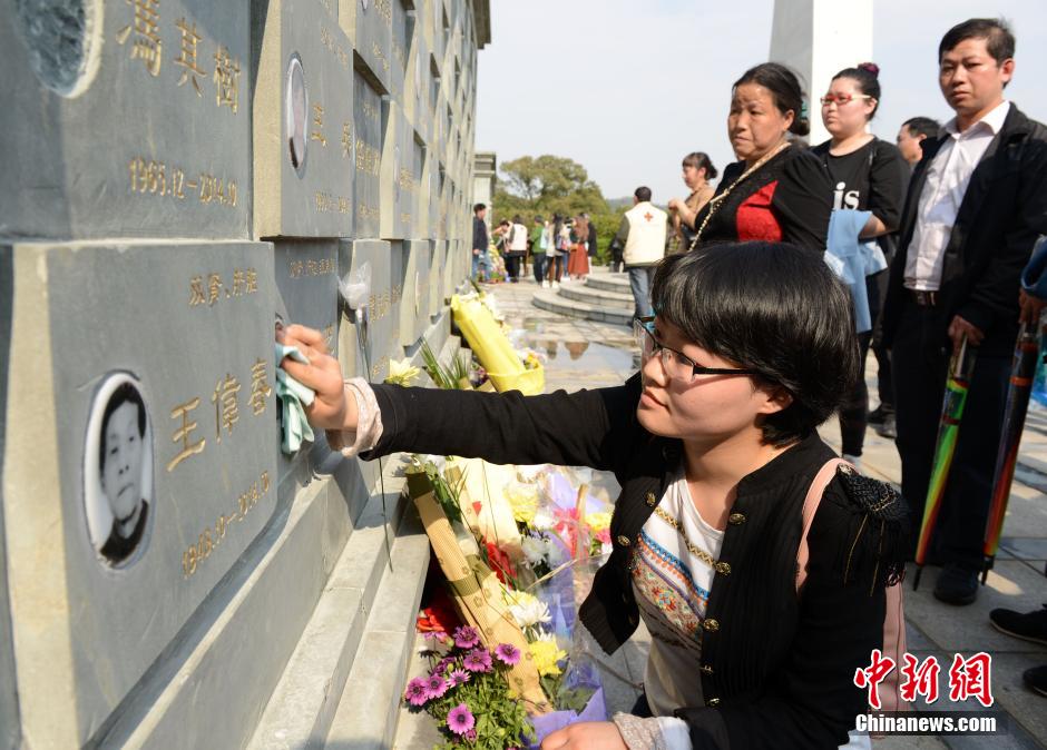 3月31日,浙江宁波遗体捐献纪念陵园在清明前夕举行祭奠活动,捐献者家属用布巾擦拭纪念墙。截止目前,该陵园已有遗体捐献48位,角膜、器官等捐献者84位,共计捐献者132位。祭奠活动中,不少捐献者家属抑制不住缅怀之情,泪洒现场。中新社发 李晨韵 摄