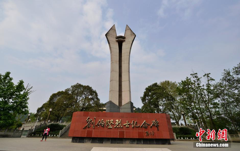 3月31日,由中国新闻社、四川省人民政府新闻办公室、四川省外事侨务办公室组织的“行走中国·2015海外华文媒体美丽四川行”联合采访活动走进巴中平昌县,来自美国、英国、加拿大、澳大利亚等16个国家的20位海外华文媒体负责人及编辑、记者参观了当地刘伯坚烈士纪念馆及国内最大规模的红军石刻标语园,倾听其壮烈故事、感受其红军精神,被当地浓厚的红色文化深深感动。刘伯坚烈士生于平昌,是共产党在第一、二次国内革命战争时期的重要领导人之一,伟大的无产阶级革命家、军事家、诗人,毛泽东同志称他是“我党我军政治工作第一人”。中国工农红军石刻标语园是目前国内最大规模的红军石刻标语园区,共收录红军标语、红军漫画等共计1600多幅,来自全国的12大苏区。图为20位海外华文媒体人士参观四川平昌县刘伯坚烈士纪念碑。 中新社发 高寒 摄