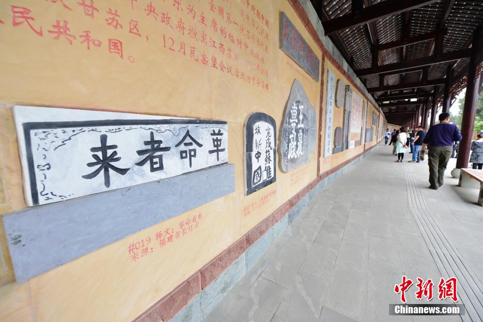 图为3月31日,20位海外华文媒体人士参观四川平昌县中国工农红军石刻标语园。 中新社发 高寒 摄