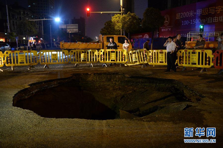 4月1日16时许,江西省南昌市红谷滩新区香江路与凤凰北大道交汇处发生地陷,塌陷面积约15平方米,深度约为3米。目前,事件未造成人员伤亡。新华社记者万象摄
