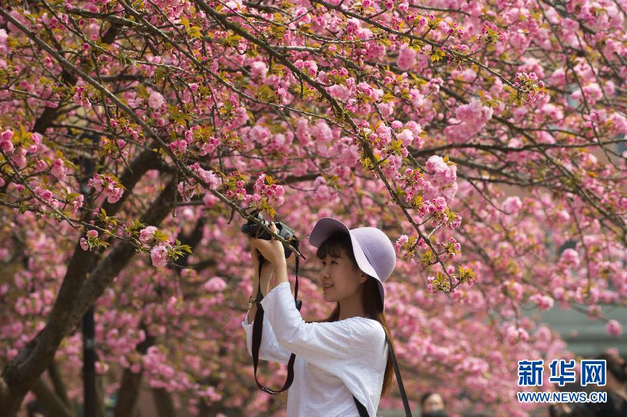 4月1日,一名游人在樱花树下拍照。随着气温回升,安徽省合肥市中国科技大学校园内的樱花全面盛开,吸引了许多市民参观留影。 新华社记者 杜宇 摄