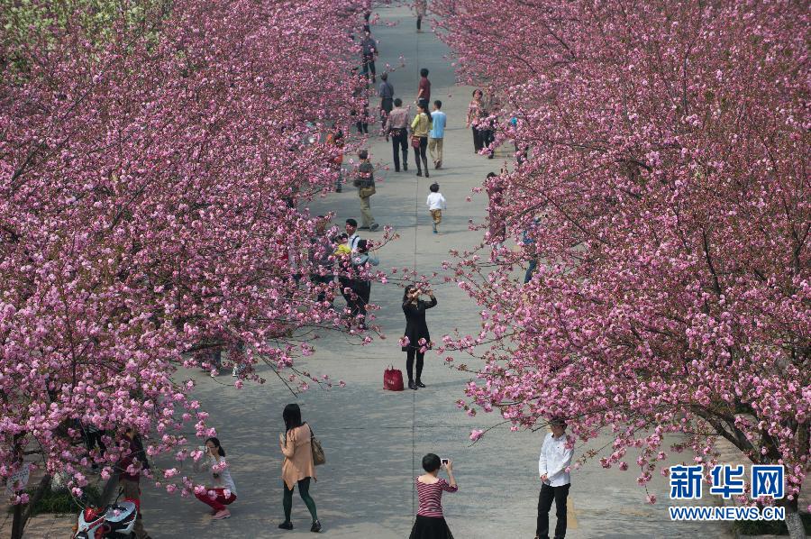 4月1日,游人在樱花树下游览、拍照。随着气温回升,安徽省合肥市中国科技大学校园内的樱花全面盛开,吸引了许多市民参观留影。 新华社记者 杜宇 摄