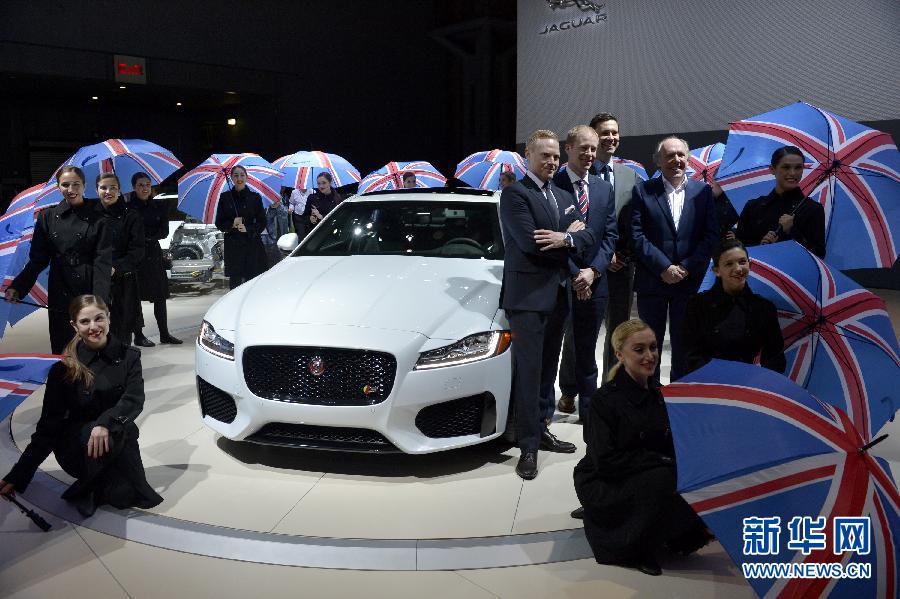 4月1日,在美国纽约,捷豹路虎的美国高管人员在纽约国际车展上参加捷豹XF新车发布活动。当日,2015年纽约国际车展开幕,奔驰、捷豹路虎、凯迪拉克、阿斯顿-马丁、福特等多家国际知名汽车厂商纷纷推出全球首发新车,展示汽车行业所采用的最新科技成果。新华社记者 王雷 摄