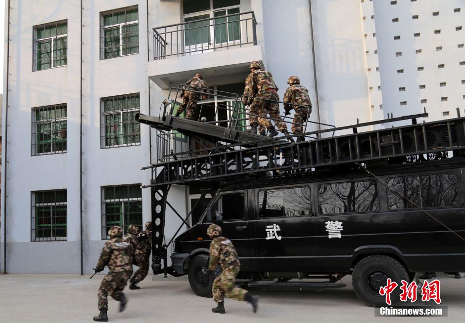 3月31日,武警烟台支队的战士们在训练基地举行了一场实弹反恐演习,突击队员使用反恐突击车、软管窥镜、震爆弹等装备制服“暴徒”,并成功解救了“人质”。杨磊 摄