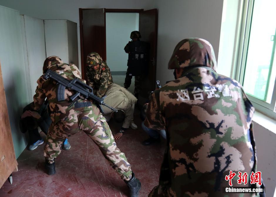 3月31日,武警烟台支队的战士们在训练基地举行了一场实弹反恐演习,突击队员使用反恐突击车、软管窥镜、震爆弹等装备制服“暴徒”,并成功解救了“人质”。杨磊 摄