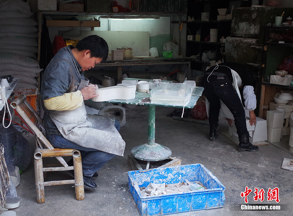 图为工人正在制作模具,用于批量生产瓷器。 中新网记者 李卿 摄