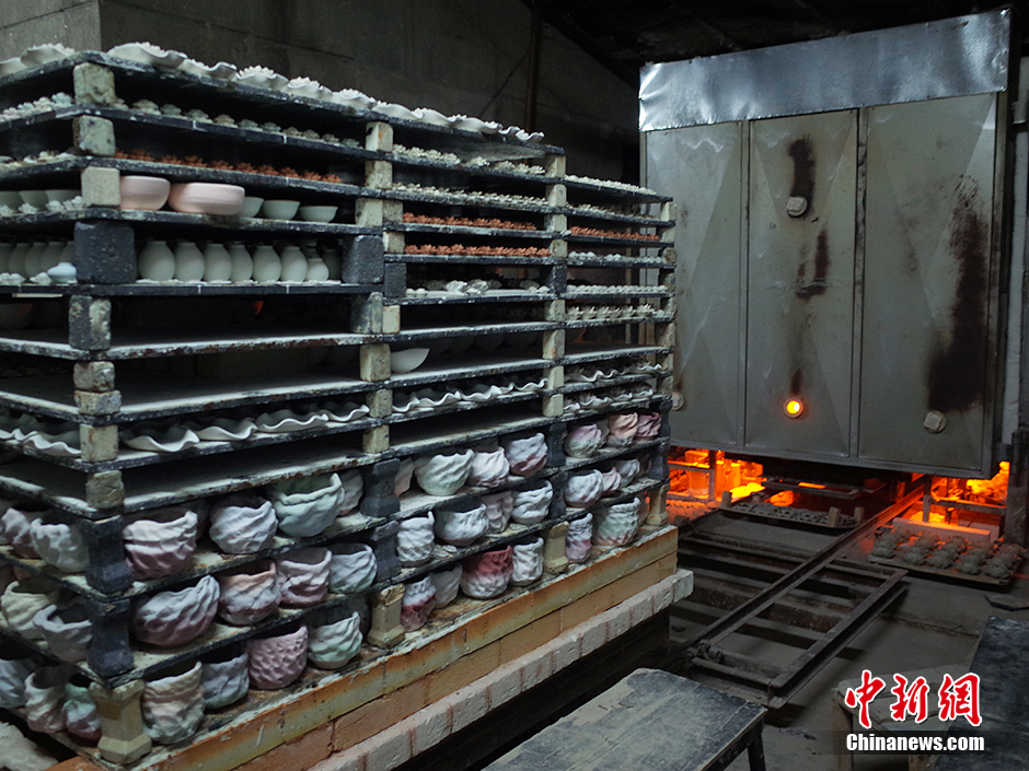 图为3月30日,江西景德镇,正在烧制瓷器的“梭子窑”,窑外还有一车陶器等待入窑烧制。 中新网记者 李卿 摄