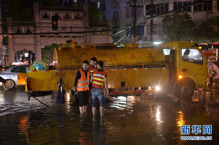 4月2日,在南昌市后墙路口,市政工作人员在疏通排水管道。