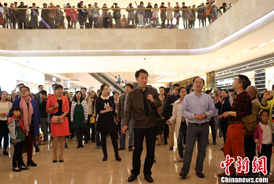 4月2日晚,由主持人、白领、企事业员工、教师、学生组成的合唱团在南京用快闪合唱的形式,一起歌唱关爱自闭症儿童的主题歌《YOU RISE ME UP》。